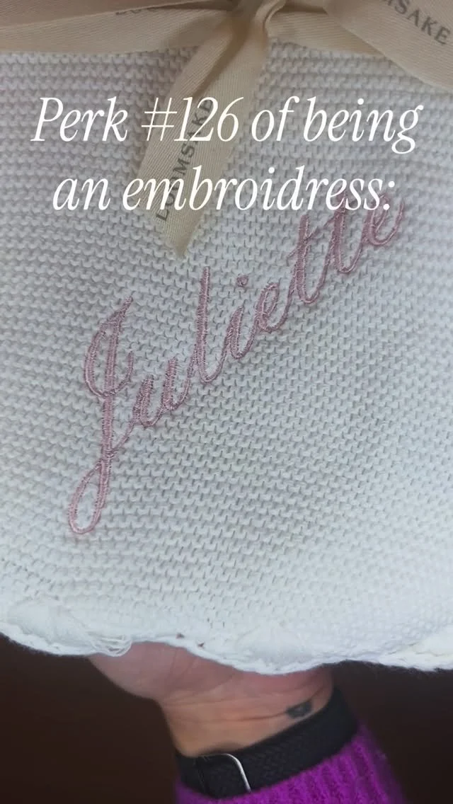 “I use Blithe for ALL of my embroidery. I own a small business and this company has been essential in customizing our office uniforms and merch. This order was placed as a personal gift for my daughter. Alyssa (the owner) is extremely communicative and delivers items in a timely manner! Will always recommend Blithe!”